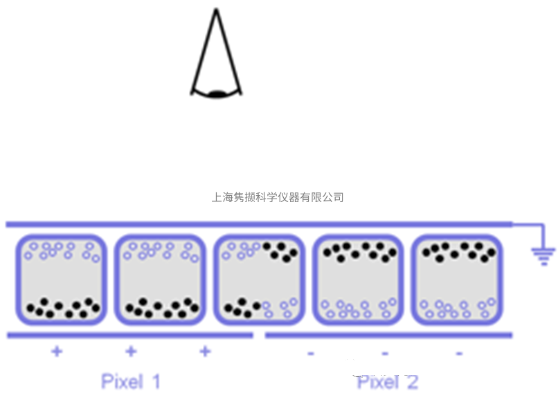 图8:感测屏幕中带电颜料微胶囊的运动。